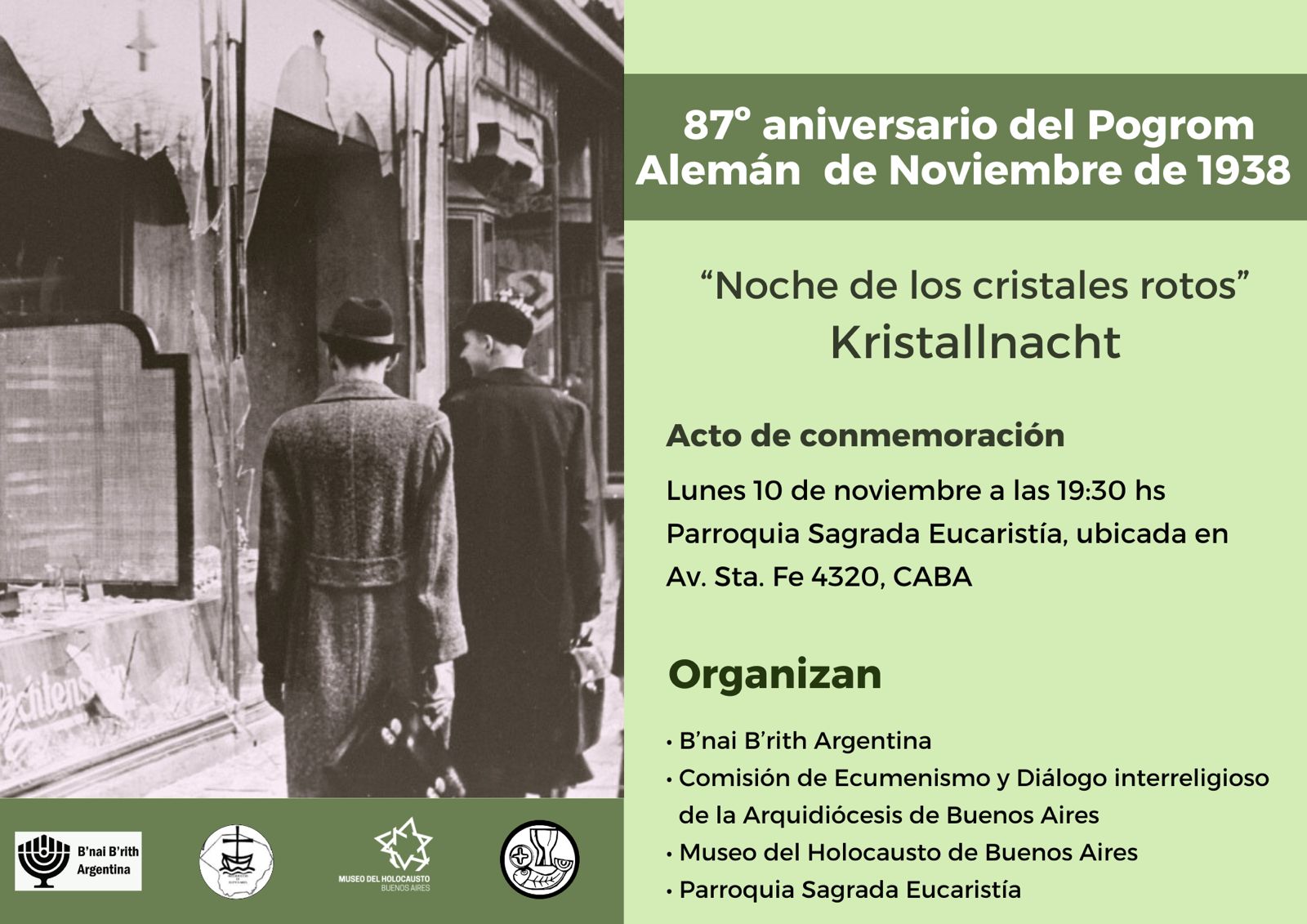 Lunes 10 de Noviembre: 87° Aniversario del Pogrom Alemán de 1938